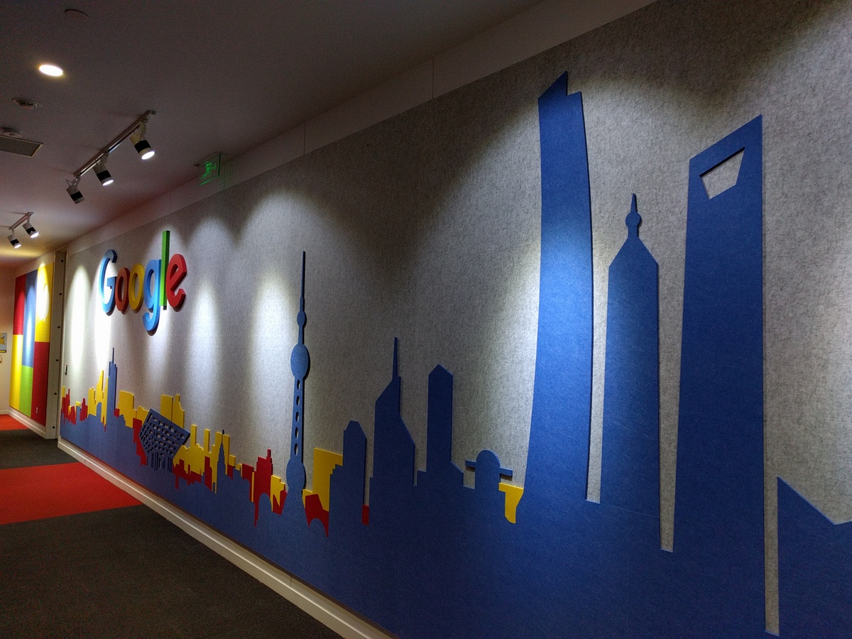 Вот я и пришёл в Гугл. В итоге расстояние в 20 этажей заняло у меня минут 15. Гораздо легче было бы наверное по пожарной лестнице спуститься! В Шанхайском офисе уже поменяли шрифт на логотипе. (У нас в НЙ - ещё не везде.)