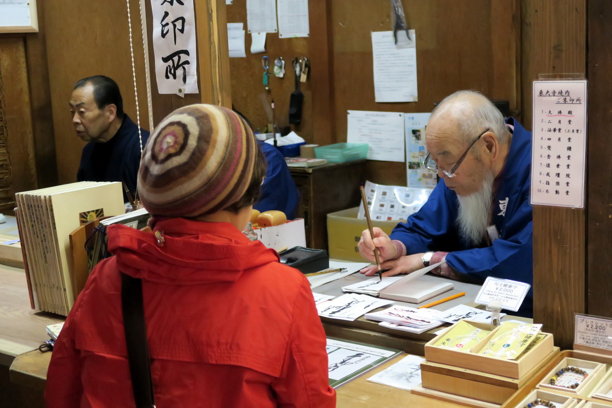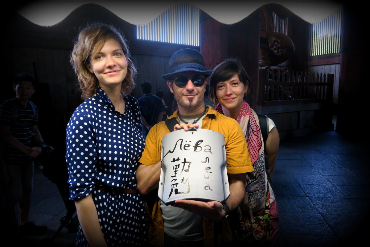 А ещё у них один из лучших способов собирать деньги с туристов, который я где-либо встречал! Ребята придумывали давать на подпись огромные глинянные плитки, которыми кроют здания храма. Ты покупаешь такую, подписываешь её, и тут же жертвуешь назад. Удовольствие стоит тысячу иен (около $10).
