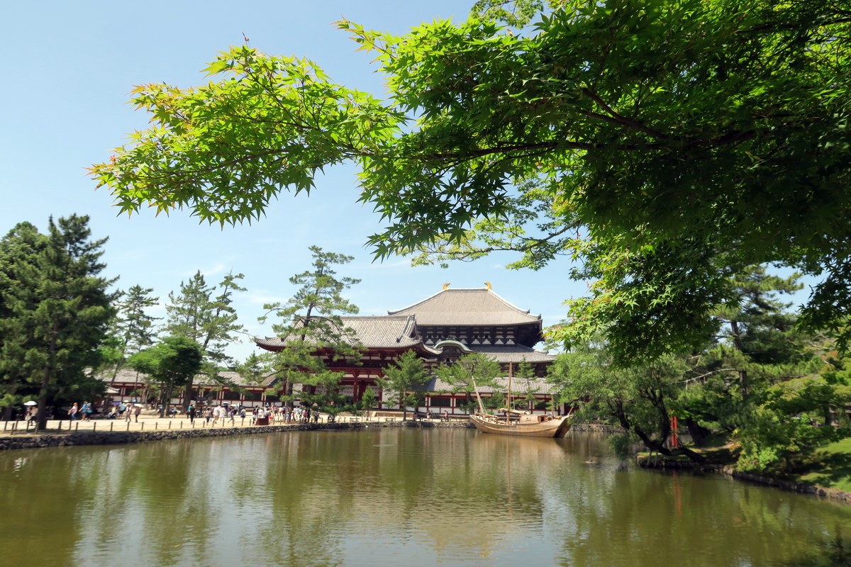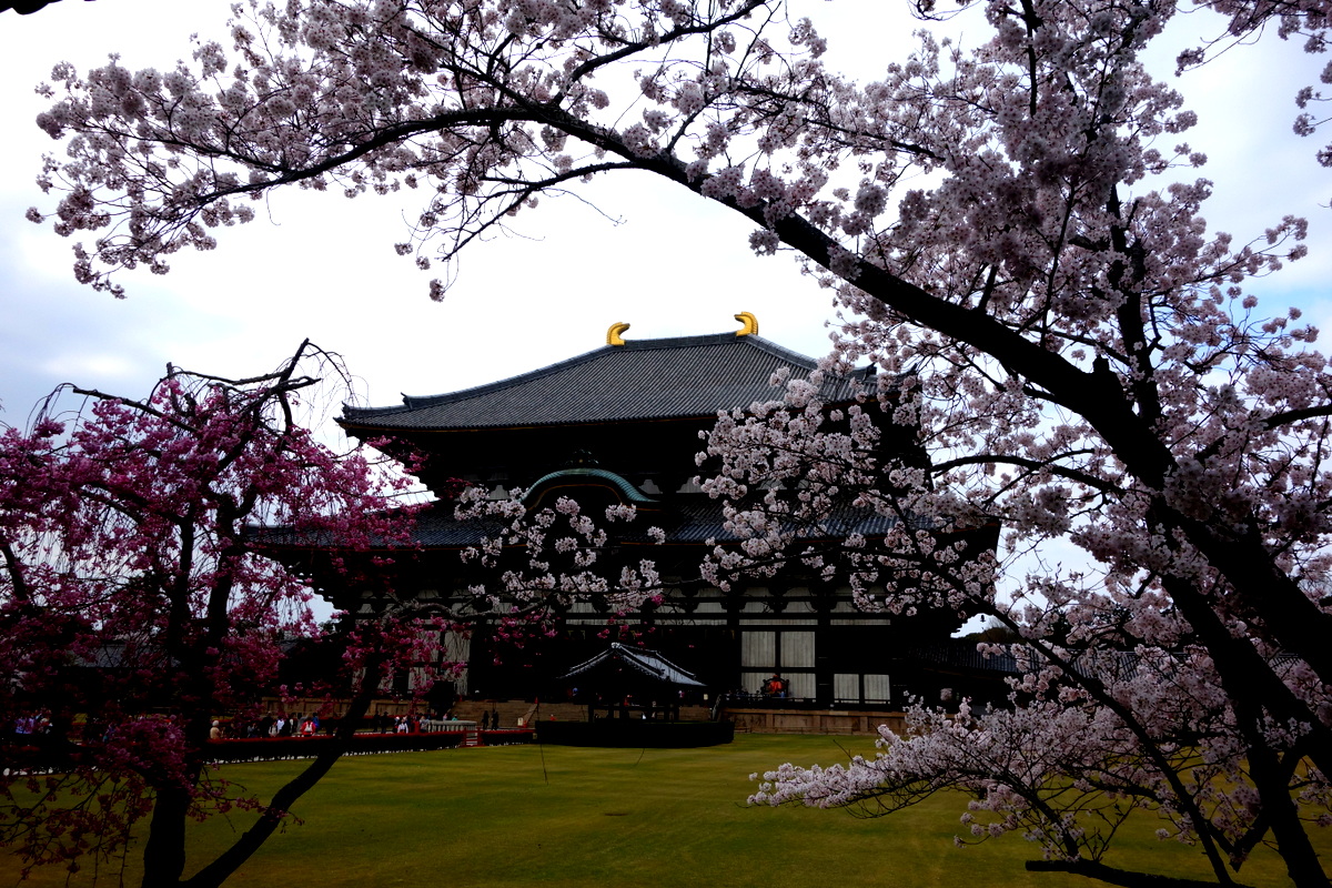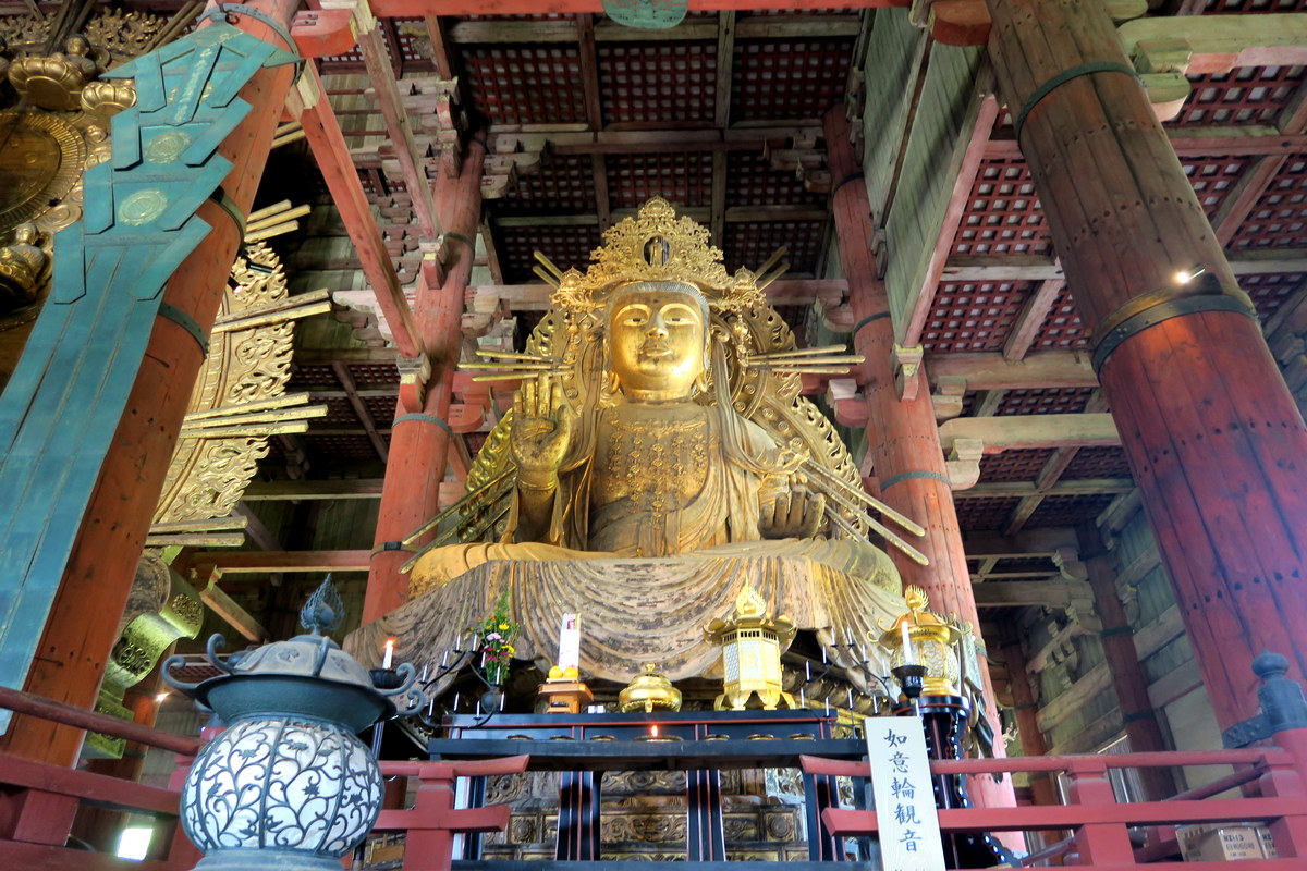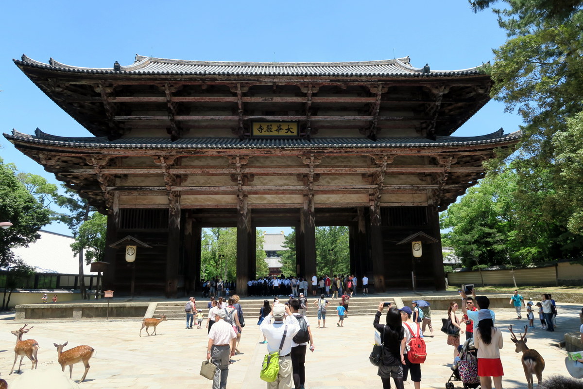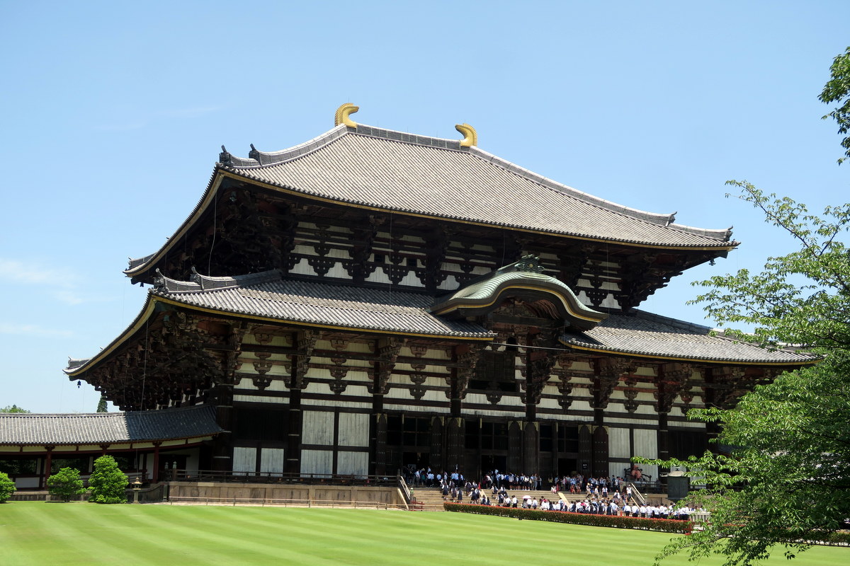 Это здание называется Дайбутсуден, павильон великого Будды. Изначально его построили в 743, по приказу императора Сёму, чтоб поместить сюда статую великого бронзового Будды. Император издал закон, требующий, чтоб японцы принимали непосредственное участие в постройке храмов - думая, что это поможет народу заручиться защитой и покровительством Будды. Согласно летописям, более 2.5 миллионов человек помогли с постройкой великого павильона. Впоследствии он два раза перестраивался, сегодняшнее здание было закончено в 1709 году.