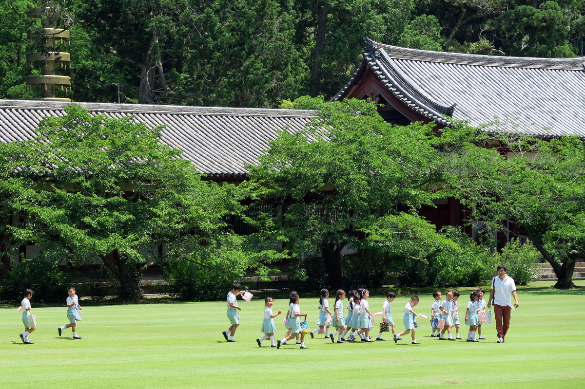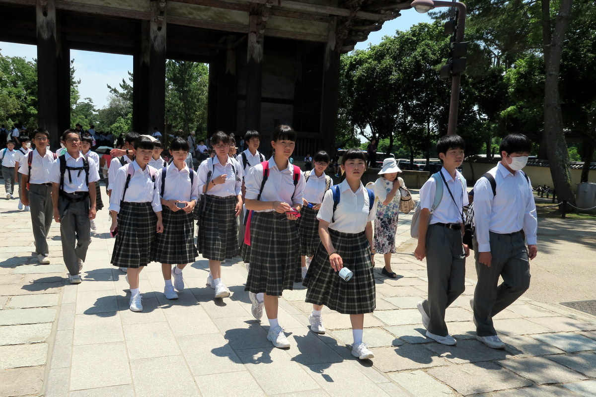 В будние дни группы школьников приходят посетить Тодай-Дзи, ведь это один из главных исторических памятников Японии. Для детей это живая история их страны.