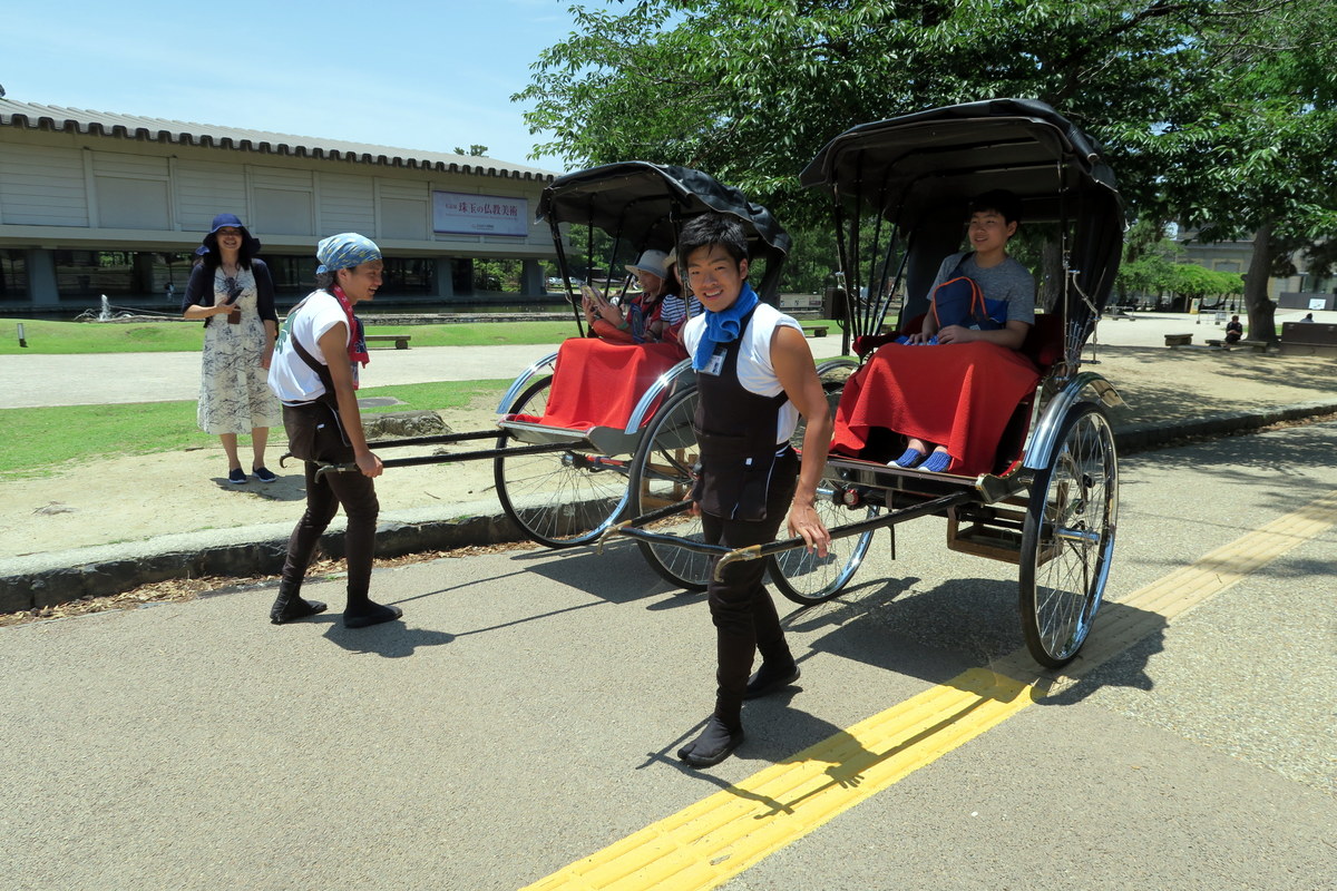 Если лень идти пешочком, можно взять "Японский лимузин" - старую рикшу, которую тянет за собой "извозчик". Они на удивление прытко бегают с этими штуками!