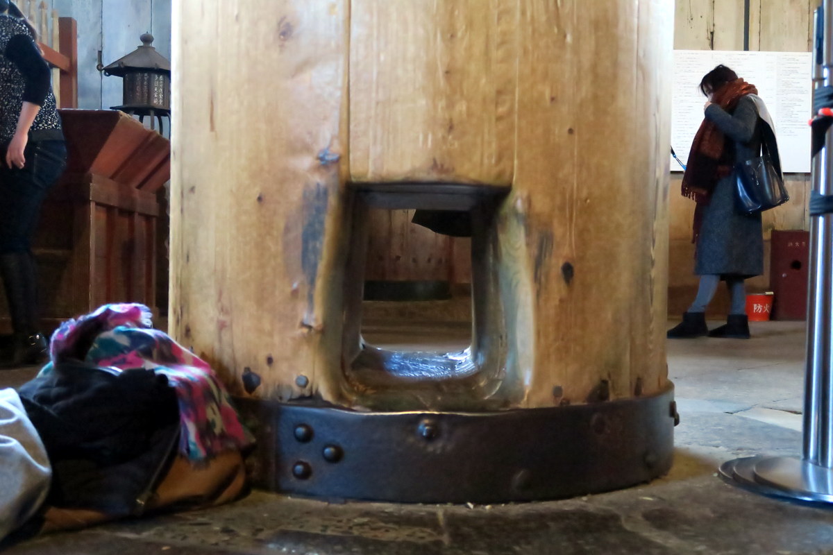 А вот и главное здание храма. Мното раз слышал, что это самое крупное в мире строение из дерева. На самом деле это было правдой до 1998 года. Есть момент, когда впервые его видишь целиком, и его размер становится какой-то удивительной неожиданностью. На фотографии размер не сразу понятен, но вы посмотрите на человечков для масштаба.