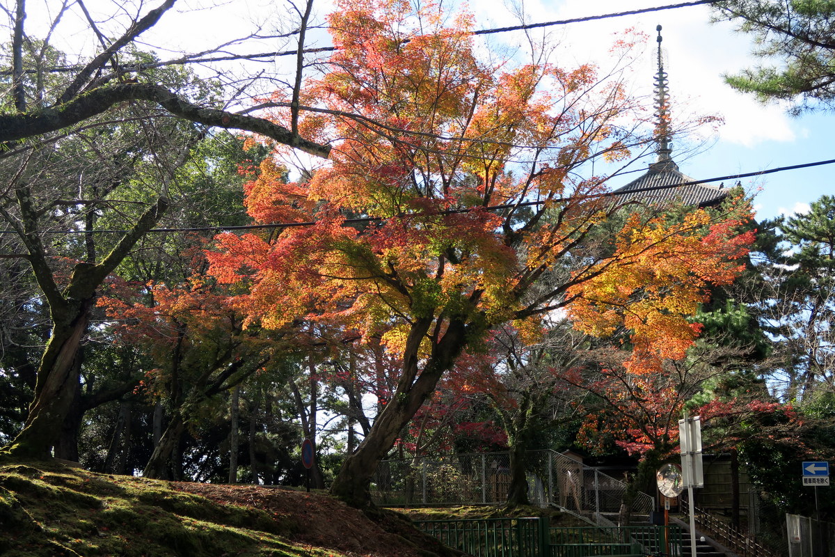 На входе в парк вы увидите пятиярусную пагоду, принадлежащую храму Кофуку-дзи - одному из Семи Древних Храмов. Он был основан даже раньше начала Нара Периода - в 669 году. Хотя пагоду построили лишь век спустя. Храм много раз разрушался (в японии это обычное дело), и сегодняшняя 50-метровая пагода практически новодел: её возвели в 1426 году.
