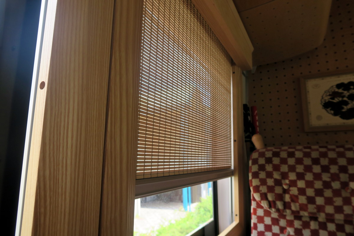 Жалюзи на окнах сделаны из тоненьких деревянных планок. Очень красиво.