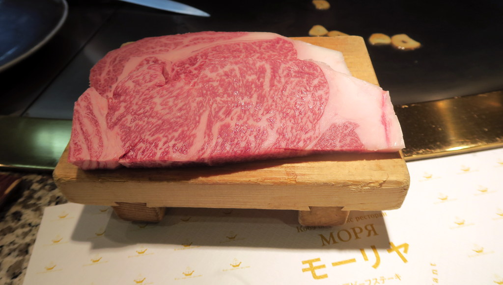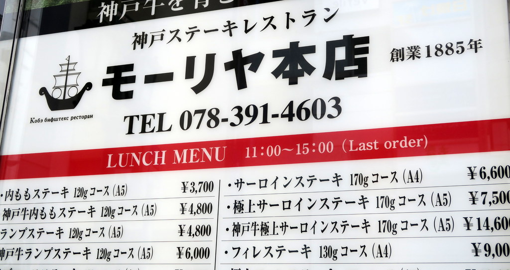 Прямо посреди Кобе, японской столици изысканной мраморной говядины, затесался дорогой стейхаус со странным названием "Моря". Причём название это хозяева пишут по-русски, кириллицей: