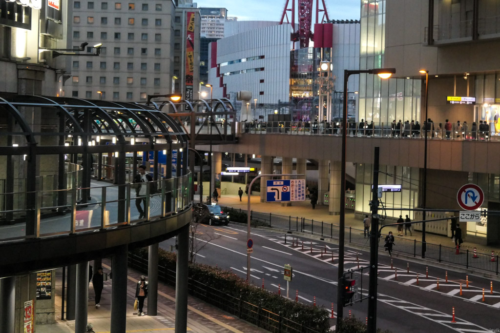 2. А всё дело в том, что район вокруг станции Осака - самый настоящий город будущего. Не тёмная дистопия "Бегущего по Лезвию", какую построили в Китае, а светлый и чистый город, просто он существует не в одной плоскости, а в трёх измерениях.