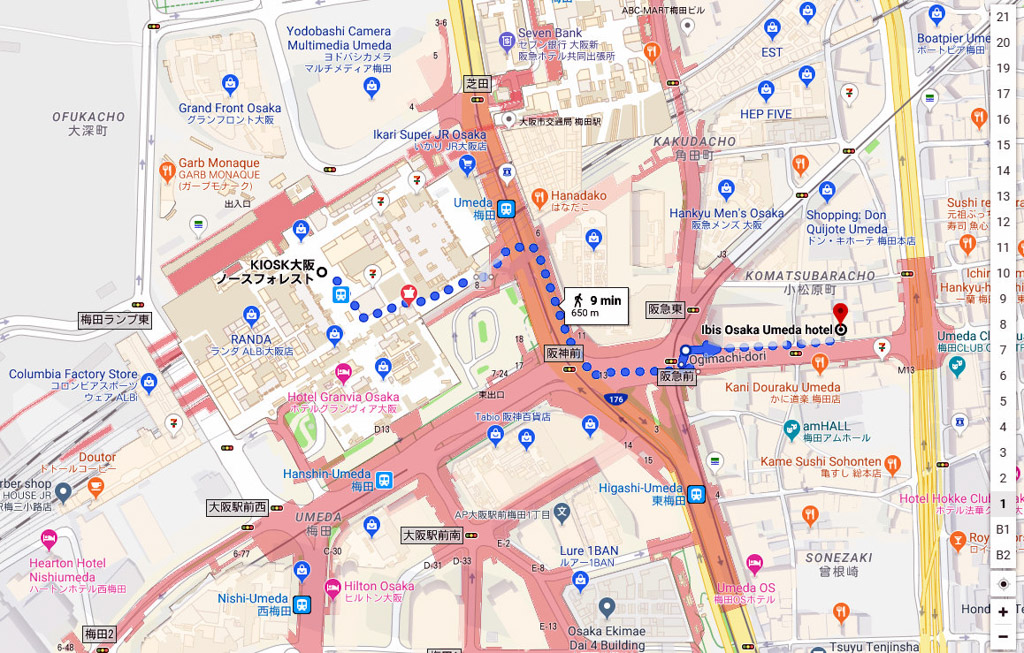 16. Но тебе далеко не всегда очевидно, что для того, чтоб попасть в отель нужно пройти через торговый центр Daimaru Umeda, да желательно на третьем этаже.