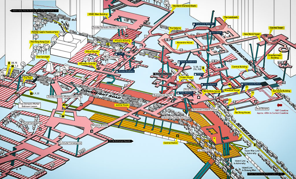 Я рассказывал как-то о сложной системе переходов, которая связывает весь деловой центр Гонконга. И, если уж начали об этом говорить, то движуха в час-пик в Гонконге тоже хоть куда!