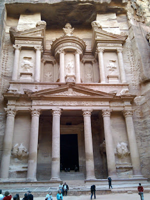 Напротив входа в площадь высится огромный фасад "Казны" - сорокаметровой высоты, напоминающий древнегреческий храм выдолбленный из скалы. Именно тут снималась сцена из которой мы узнаём что настоящее имя Индианы - Генри Джоунс Младший. Впрочем зияющий вход Казны не ведёт ни к каким лабиринтам с сокровищами и ловушками. Из большого квадратного зала попахивает советским подъездом, а в полумраке можно разглядеть что все проходы вглубь скалы тупиковые.