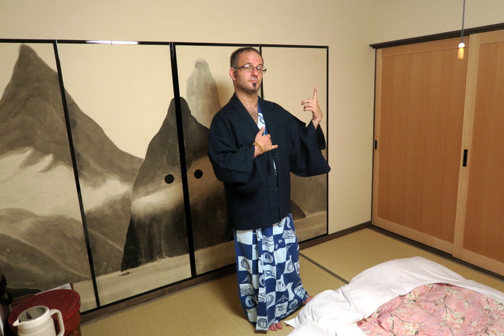 Юката - это такой традиционый халатик который обязательно дают во всех Японских отелях и рьёканах. Все туристы изначально их называют "кимоно". Мне казалось он достаточно хорошо гармонирует с буддистской эстетикой, поэтому я удивился.