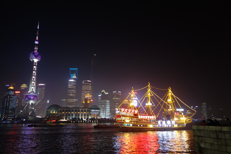 На удивление Китайцы выключают свою великолепную подсветку очень рано: в 10 часов вечера всё тухнет по обе стороны реки, и гулять тут же становится намного менее интересно.