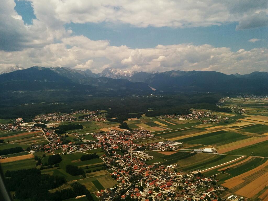 Ещё на подлёте Словения порадовала видами из окна самолёта. Так как я пересаживался в Париже, летел с севера и под нами проплывали заснеженные верхушки Альп.