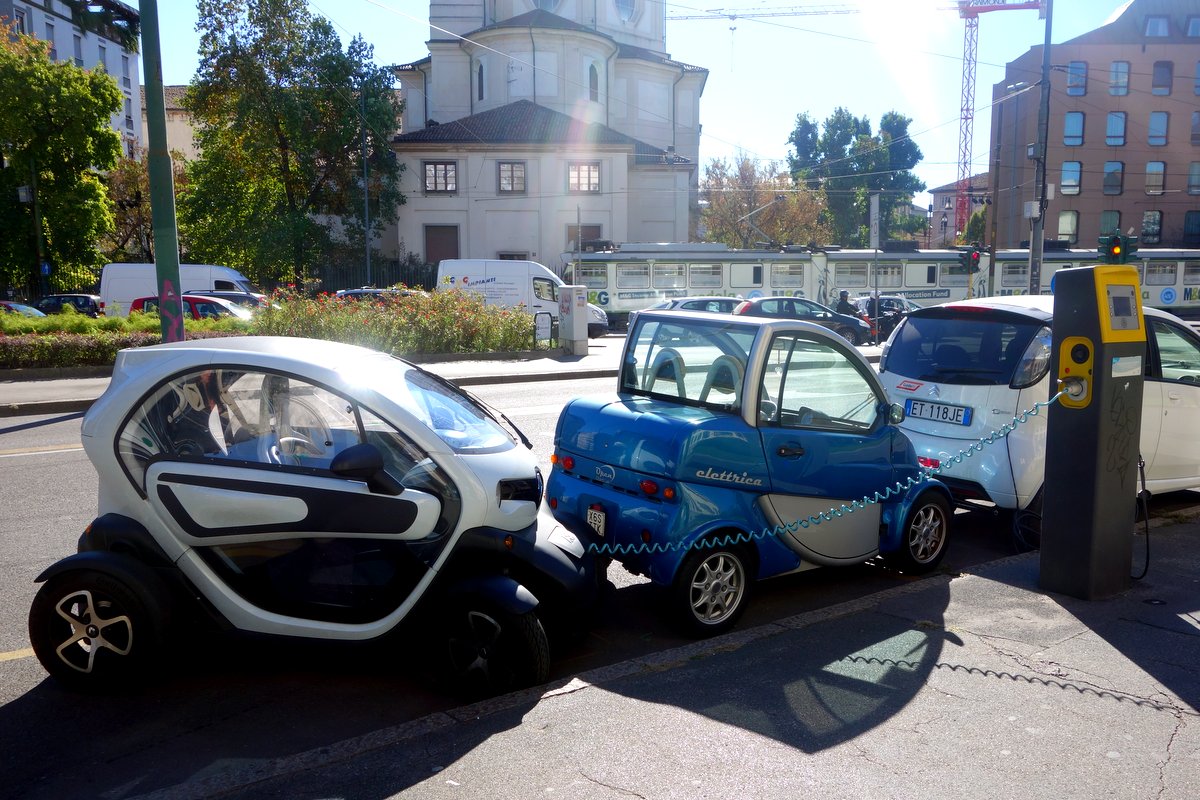 А в городах то и дело попадаются вот такие стоянки-заряжатели для электромобилей. И в Австрии, и в Милане тоже видел. От них заряжаются всяческие мелкие машинки-букашки, настолько ми-ми-мишные что так и хочется их погладить. Больших машин типа Теслы я у таких розеток не видел. Интересно как проходит оплата за такую стоянку, и платят ли паркующиеся за съеденное электричество...