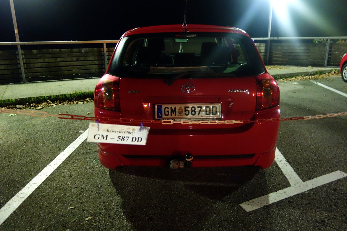 Резервированная парковка на городской стоянке: парковочрое место отмечается копией номера машины. Видел такое только в Гальштате, где очень мало места в городке. Интересно может ли владелец такого парковочного места уступить его другу на короткое время?