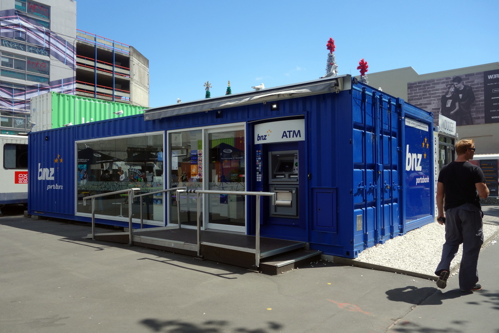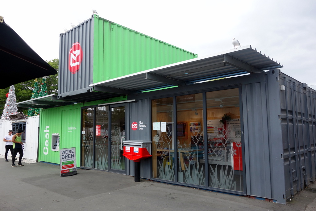 С боков картонный собор подпирают покрашенные в белый цвет контейнеры. Контейнеры вообще стали главным символом реконструкции Крайстчёрча. Они недорогие, прочные, сравнительно легко перевозятся, и крепятся друг к другу. Их здесь используют чтоб подпирать стены...