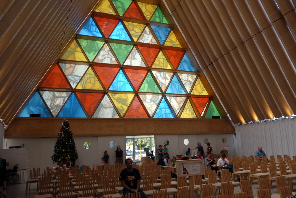 Чтоб город не остался без собора, построили временный - его называют "картонным собором", так как главные несущие балки у него из рулонов картона. Так же в конструкции используется фанера. (Тут уж и я подумал про временные храмы Бёрнинг Мэна.) Именно этим собором NYT иллюстрировали город в своём списке.