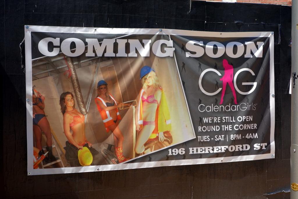 Ну и конечно главный герой города - строитель. Это видно даже в рекламе будущего стрип-клуба.