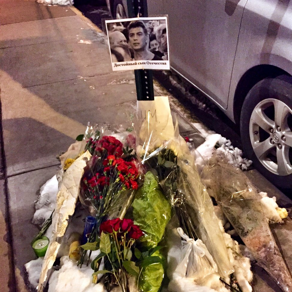 А вчера пошёл. Хотел букет положить, по случаю убийства Немцова. Как-то неожиданно сильно меня оно задело - я даже удивился немного. Его политические успехи я благополучно пропустил - не следил в 90-х за российскими делами. Да и в 2000-е, за оппозиционной деятельностью Немцова я наблюдал не слишком внимательно. Так что долго не мог понять, почему ж я так переживаю... А потом в Фейсбуке увидел у кого-то слова на этот счёт - "произошла Великая Несправедливость" - и щёлкнуло. Действительно ведь. Несправедливость всегда коробит.