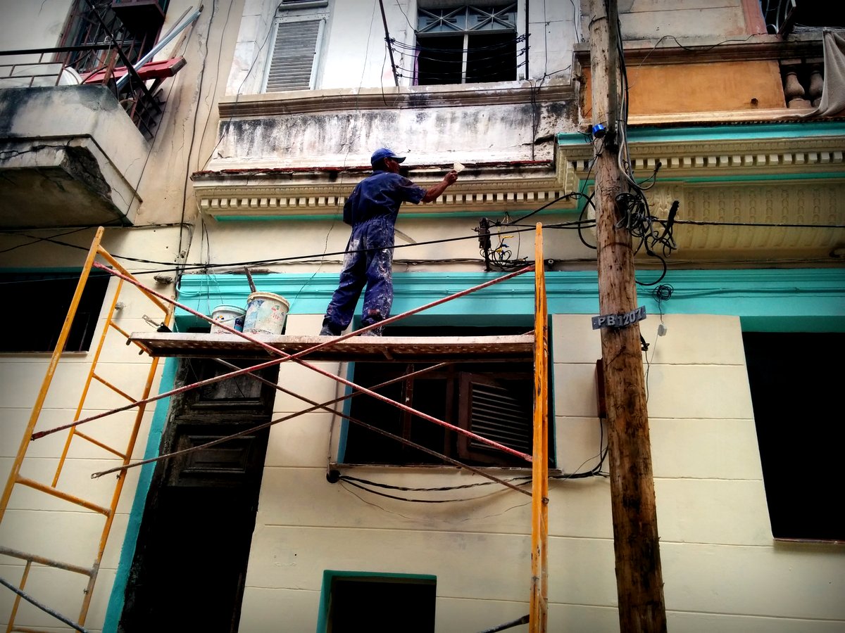 А вот ещё кто-то приводит свой дом в порядок. Кубинцам разрешают приватизировать жильё, и они покупают квартиры. Купил - и давай реставрировать фасад, кто как может.