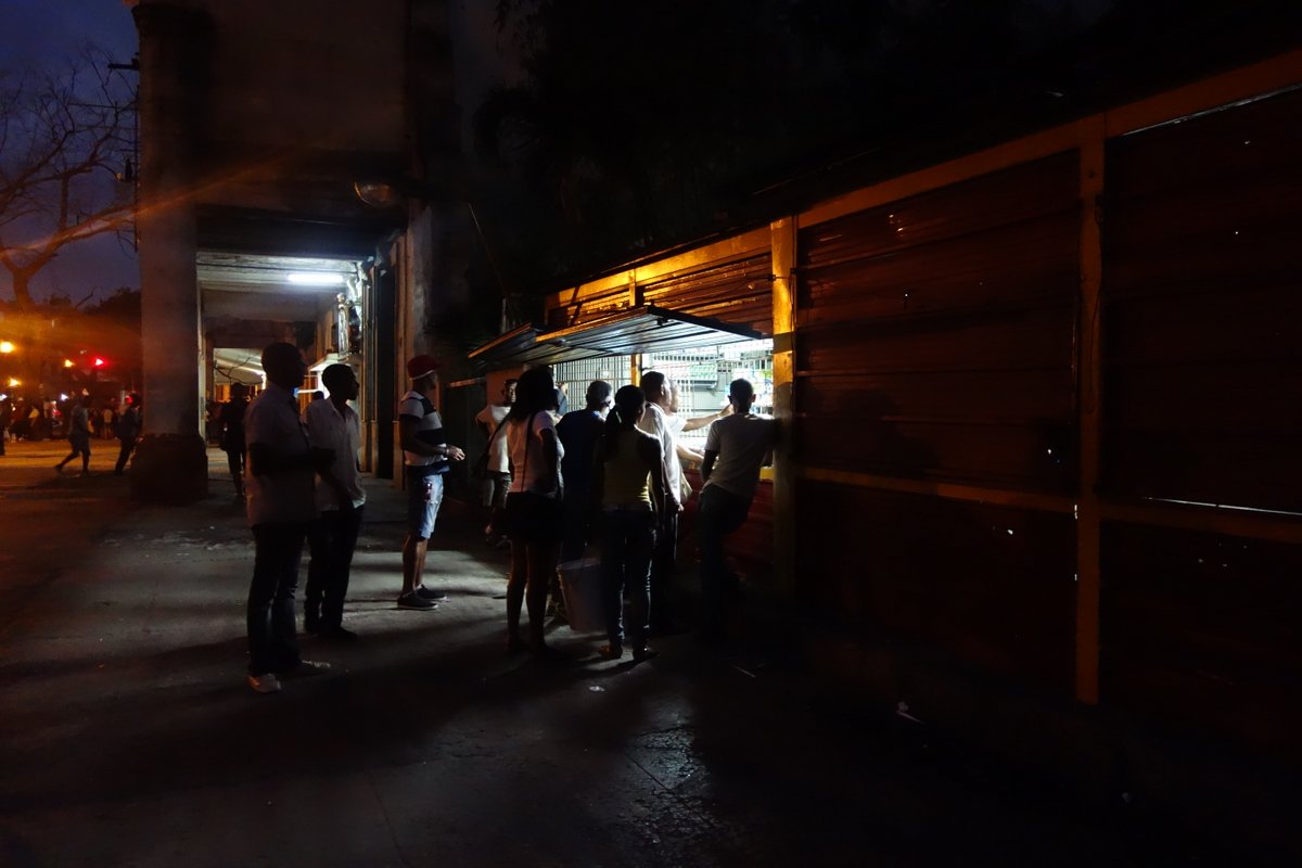 Когда заходит солнце, в Гаване очень быстро наступает темнота. Люди толпятся у подсвеченых лавок. Что это за место? Тир? Фаст фуд? Киоск? Мы так и не поняли, было слишком темно.