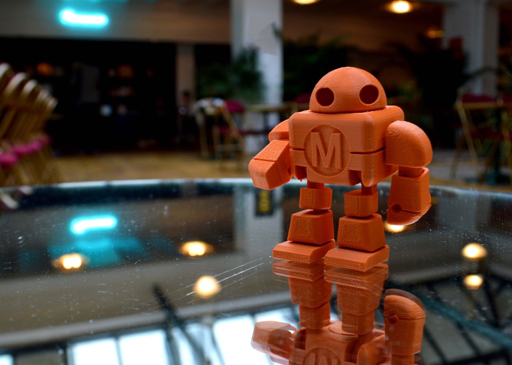 Было так же много и простеньких игрушек, особенно пластмассовых роботов. Робот Maker Faire - талисман энтузиастов трёхмерной печати. Кстати именно фигурка такого робота, с подвижными руками, ногами и головой и была самой впечатляющей 3D-распечаткой что я видел на выставке. Трёхмерная модель робота устроена так, что фигурка с работающими шарнирами печатается в один заход! (Энтузиасты называют это "Print in Place", и добиться этого совсем нелегко.)