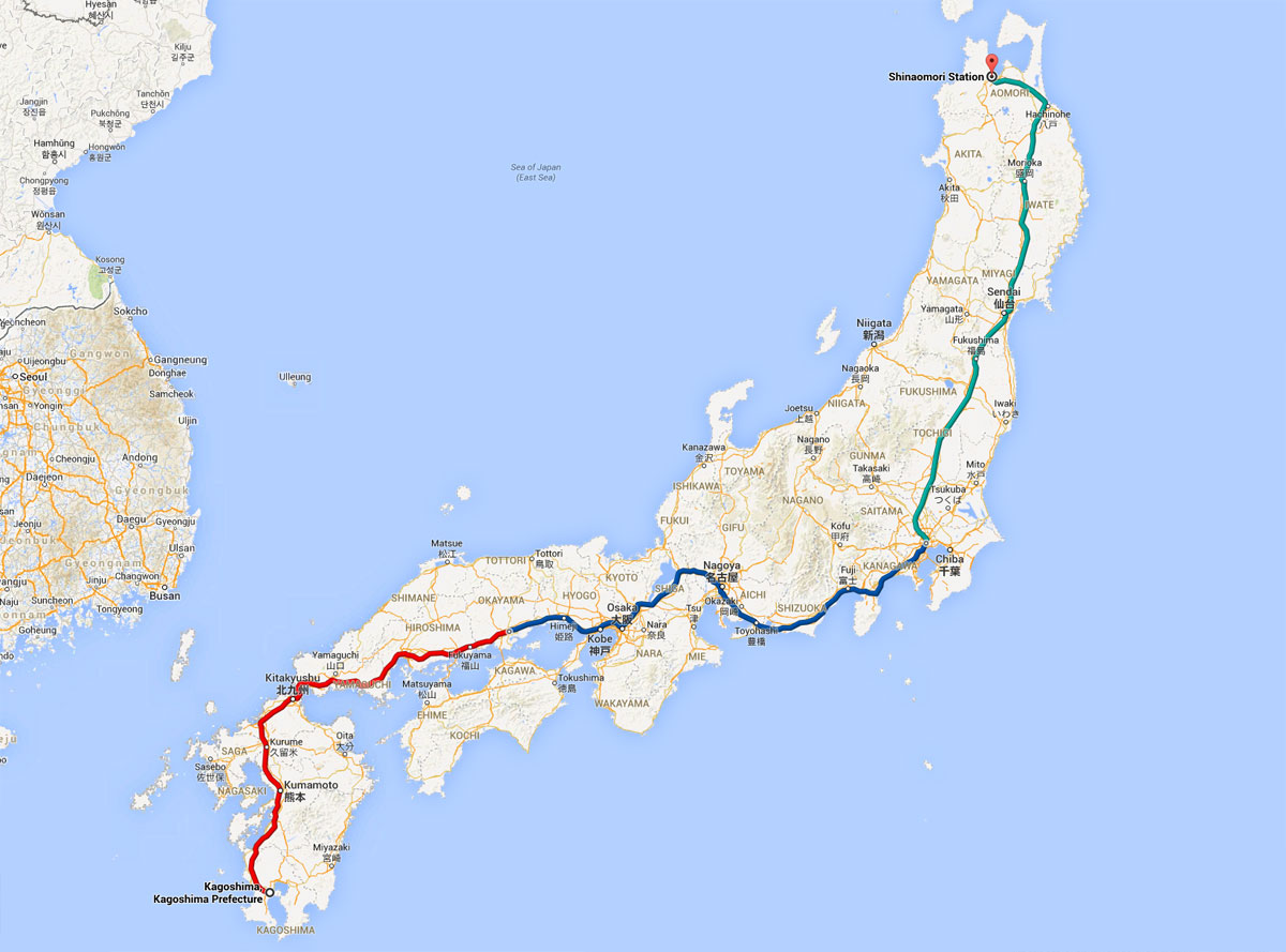 Система синкансэнов служит главной транспортной артерией Японии. Различные линии соединяются в одну длинную супер-линию, которая связывает всю страну: