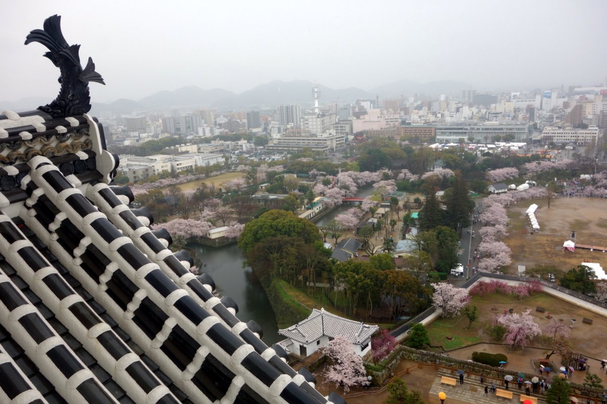 Он тут стоит на несколько веков дольше одноимённого городка, и конечно же является главной его достопримечательностью. Изначальное укрепление на холме Химэяма (что значит "гора принцессы") был построен в далёком 1333 году, потом несколько раз перестраивался и дополнялся, а в нынешней форме существует с начала 1600х годов.