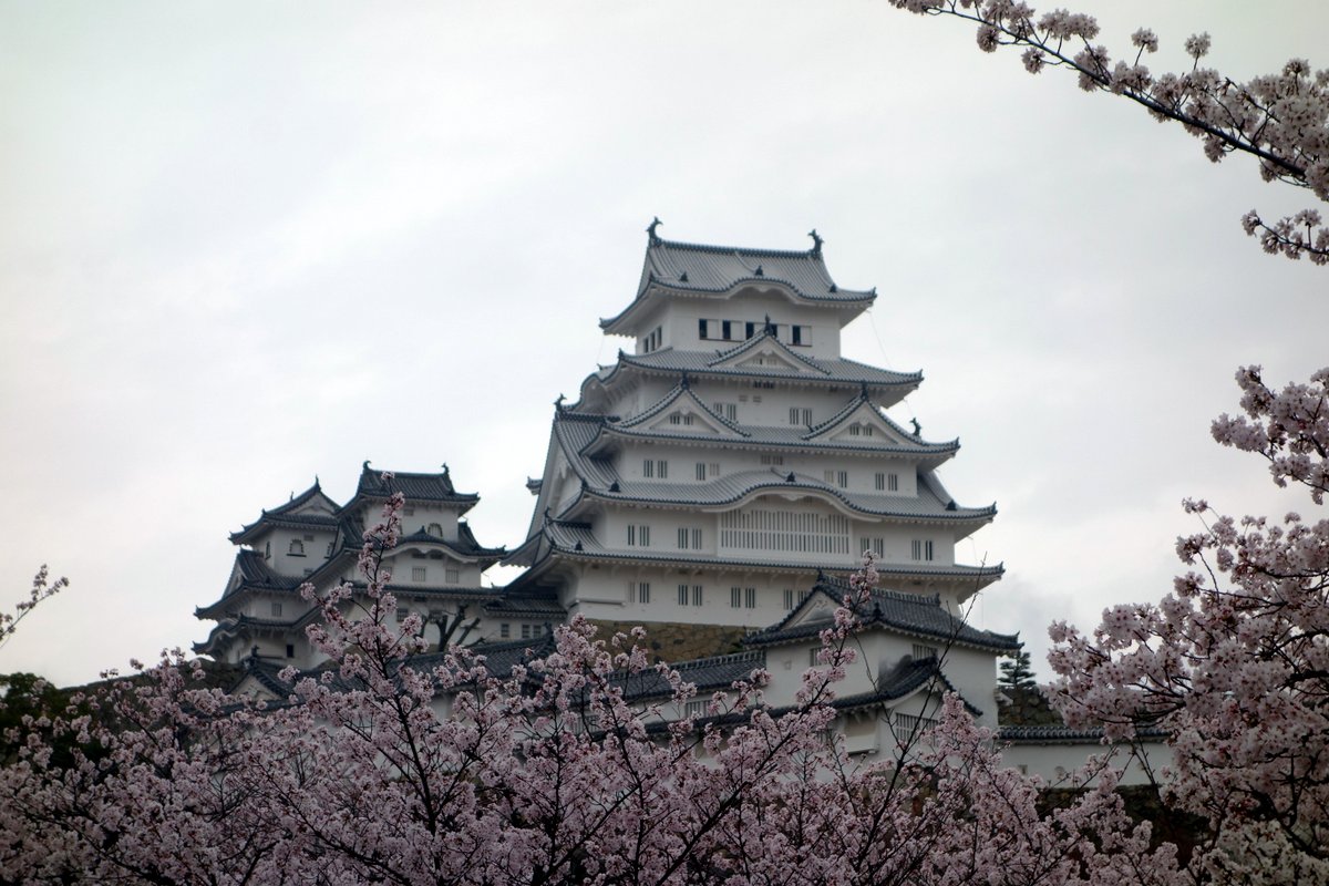Замок Химэдзи (Himeji castle) - самый большой в Японии, и считается ярчайшим примером японского феодального замкостроя. Его так же называют "Замком Белой Цапли", якобы потому что он похож на взлетающую птицу. Лично я этого сходства не разглядел. Химэдзи очень внушительно высится над цветущей сакурой, как будто парит над облаками - но чтоб прям цапля...