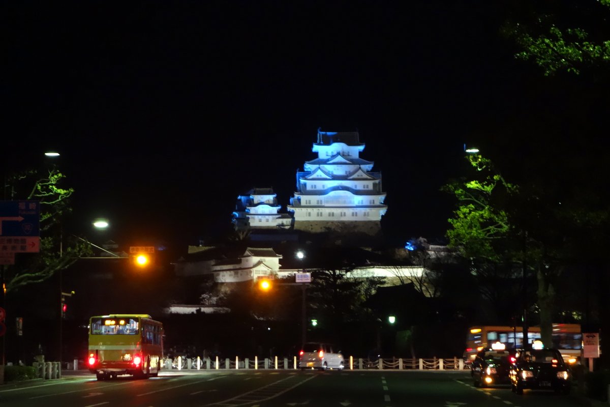 Химэдзи расположен в западе от Осаки - где-то час езды синкансэном от Киото, и чуть больше трёх с половиной часов из Токио. Мы приехали сюда уже вечером, и сразу же при выходе со станции увидели подсвеченный замок вдалеке.