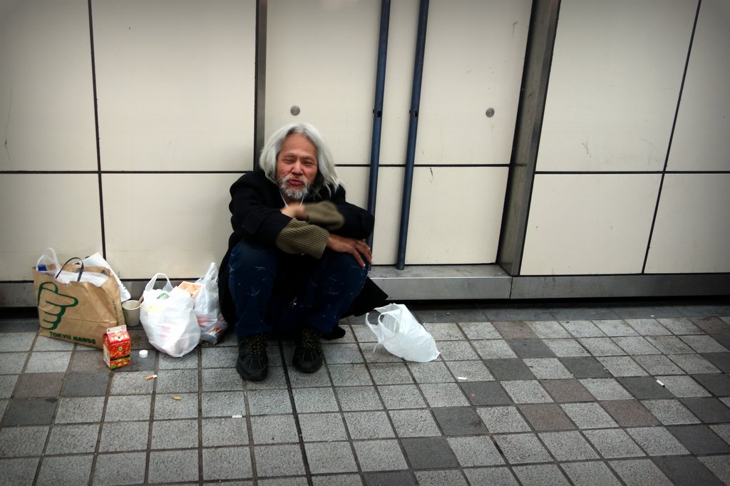 А вот японский бомж. В Японии даже бомжи - немножечко хипстеры: