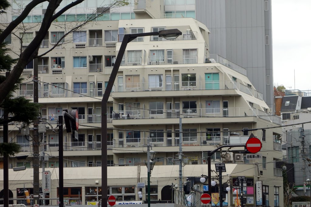 Японцы любят верхушки жилых домов делать под уклоном 45 градусов. Таким образом в каждой квартире получается балкон под открытым небом. Ну и соответственно квартиры чем выше, тем меньше. Зато такие здания похожи на какие-то курорты. И пропускают на улицу больше света.