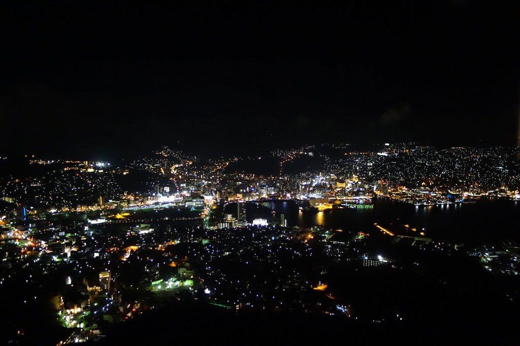 В Нагасаки все рекоммендуют подняться на гору, посмотреть ночной вид. По дороге на канатной дороге объявляют, что вид сопоставим с Гонконгом и Монако. В Монако я не был, но до Гонконга тут явно далеко: