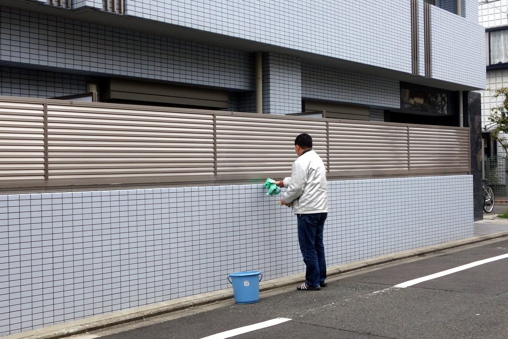 Как и в Гонконге, много домов облицовано кафельной плиткой. Кафельная плитка легче моется. Это важно, так как моют дома тут вручную: