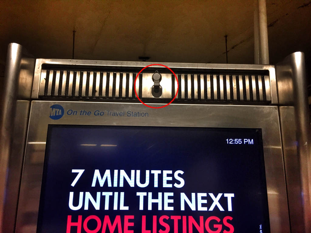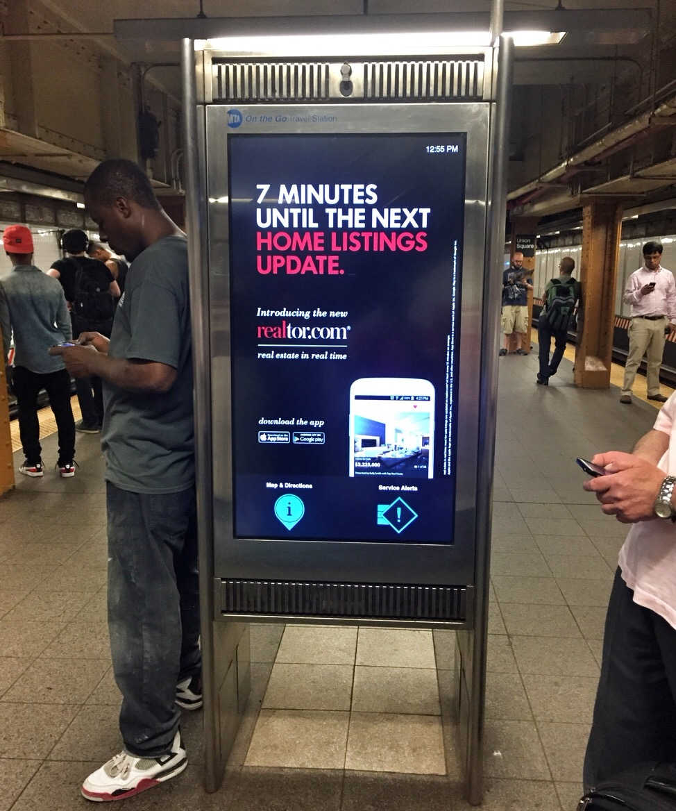 Пару лет назад в Нью Йоркском метро появились вот такие штуковины - большущие мониторы которые показывают рекламу. То есть, они показывают немножко информации про метро (например когда следующий поезд), но в основном конечно там реклама.