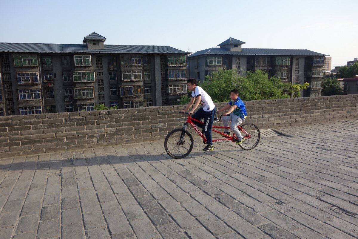 Городские стены Сианя высотой с хорошую трёхэтажку, а верх стен скорее напоминает широченный бульвар покрытый брусчаткой. Там даже можно на велосипеде кататься по всему периметру (их сдают в аренду в нескольких местах прямо на стенах).