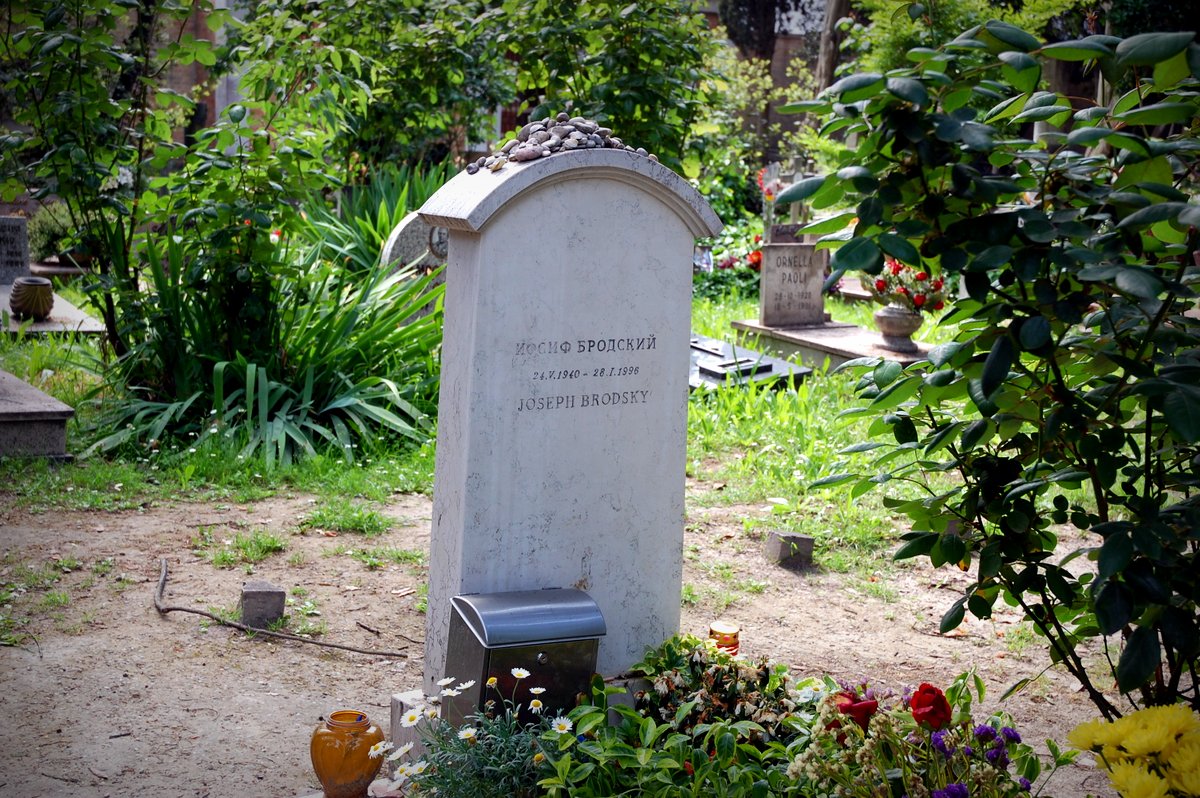 Ну, а Катя, любит стихи Бродского, и говорит "Поехали к нему на кладбище!" Я помню тогда очень удивился - "Почему," думаю, "русский поэт, который переехал в Америку похоронен в Венеции?.."