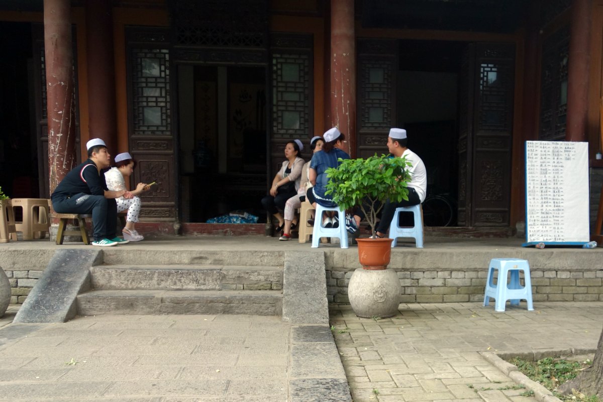В одном из внутренних двориков заседают прихожане. Отличить Хуэй от обычных китайцев можно разве что по тюбитейкам.