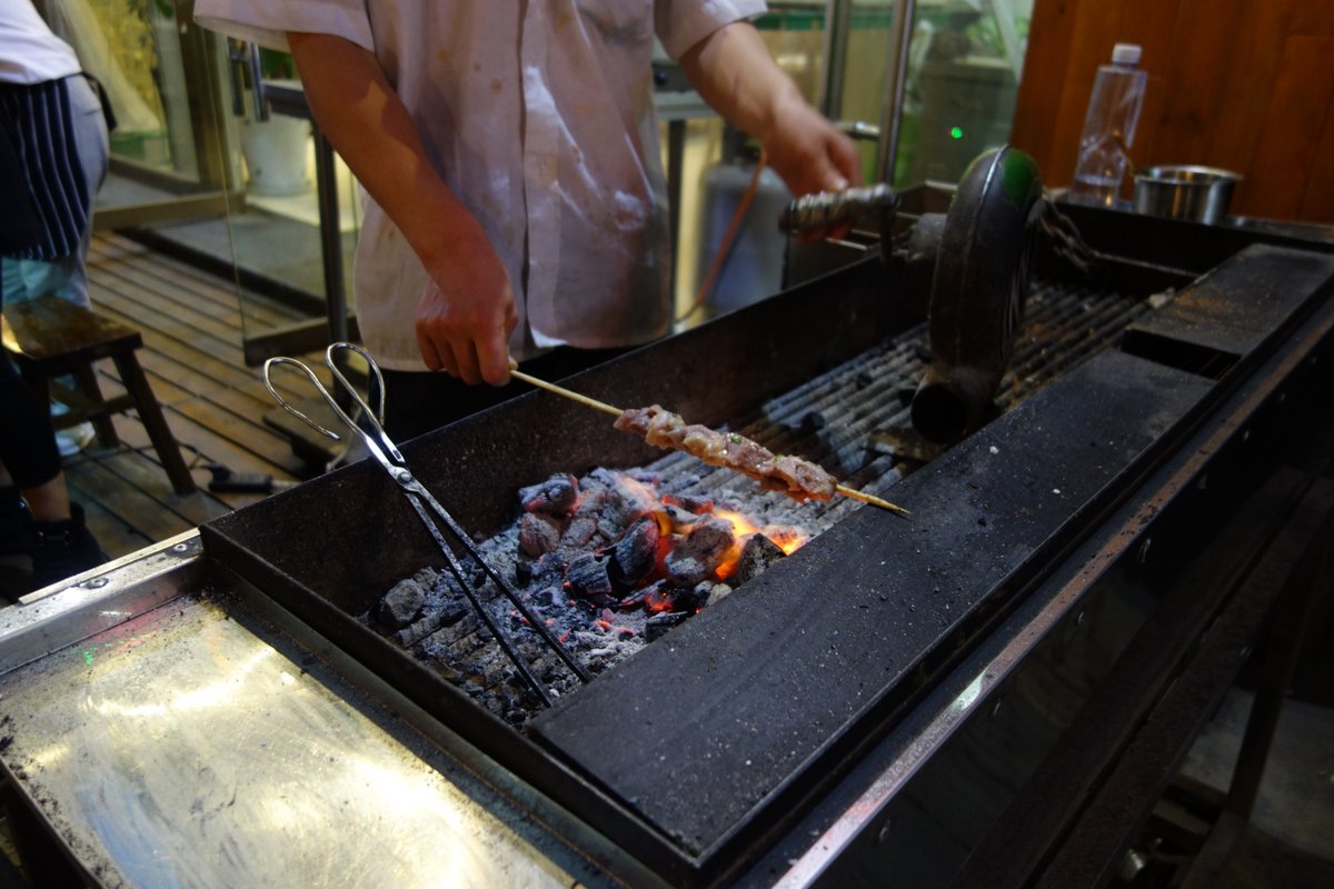 Чтоб быстрее пожарилось, некоторые уличные повара используют вот такой агрегат чтоб раздувать угли. Хозяин крутит ручку, и воздух идёт из носика, разжигая огонёк.