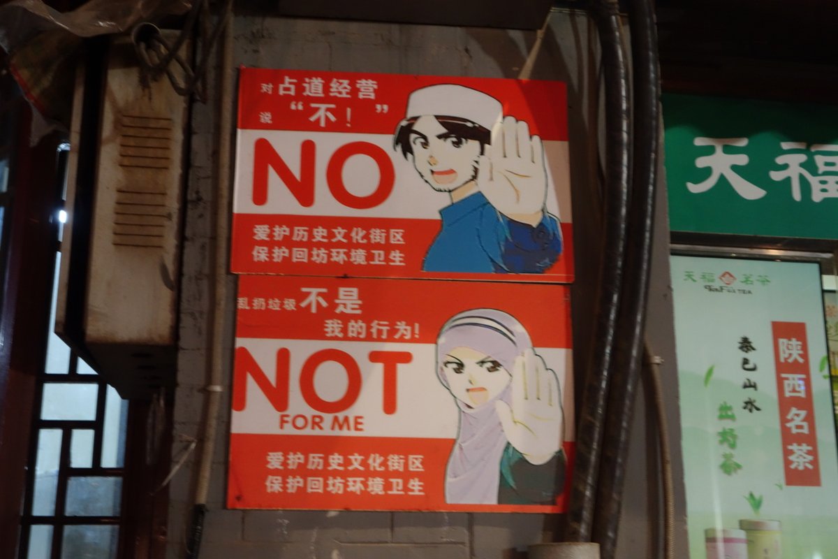 Видели там на районе очень странный плакат - мусульманские мульт-герои как будто с рекламы трезвого образа жизни от чего-то очень активно отказываются. Правда от чего мы так и не поняли - китайский язык у нас примерно на нулевом уровне.