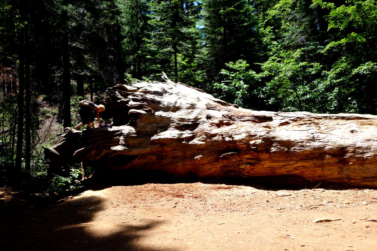 Но иногда старые секвойи всё же гибнут - от пожаров, бурь и сильных снегопадов. В роще лежат несколько таких падших гигантов. Пройдя вдоль одного из них, и вскарабкавшись на поваленный ствол, ещё лучше чувстувешь размер этих невероятных деревьев.
