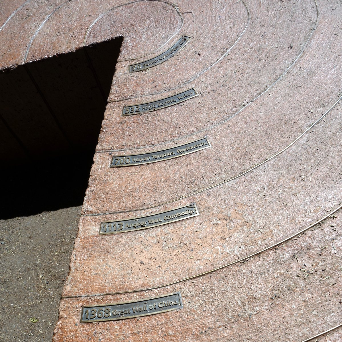 На первой отмечен римский Колизей, построенный в 70 году нашей эры. Да, некоторые секвойи живут по две тысячи лет, а некоторые и дольше того! Другие достопримечательности моложе нашего ненастоящего пня: Софийский Собор в Стамбуле, храмы Майя в Гватемале, Ангкор-Ват в Камбоджи, и Великая Китайская Стена.