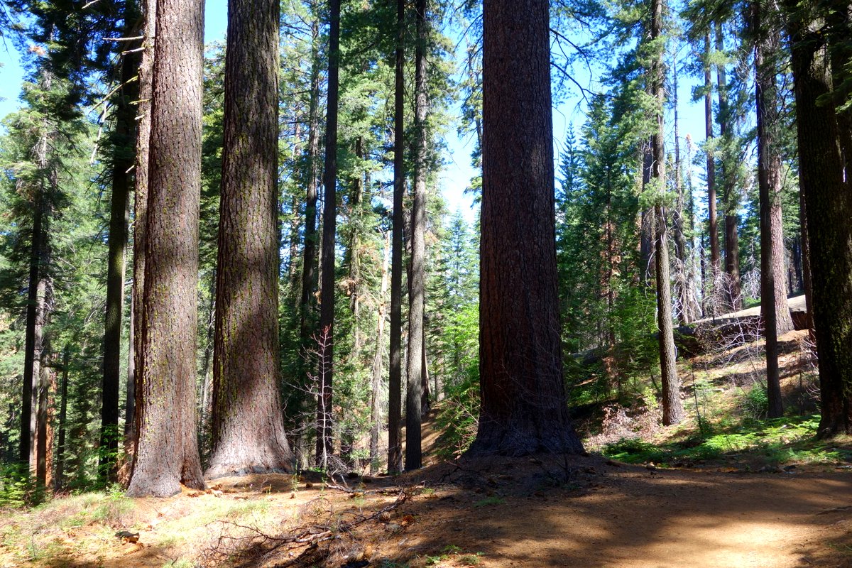 Кстати, не стоит представлять рощу как частокол древних исполинов. Большинство деревьев в ней - обыкновенные крупные сосны. (Я сперва думал что они - молодые секвойи, но оказывается эти деревья называются Sugar Pine - спасибо