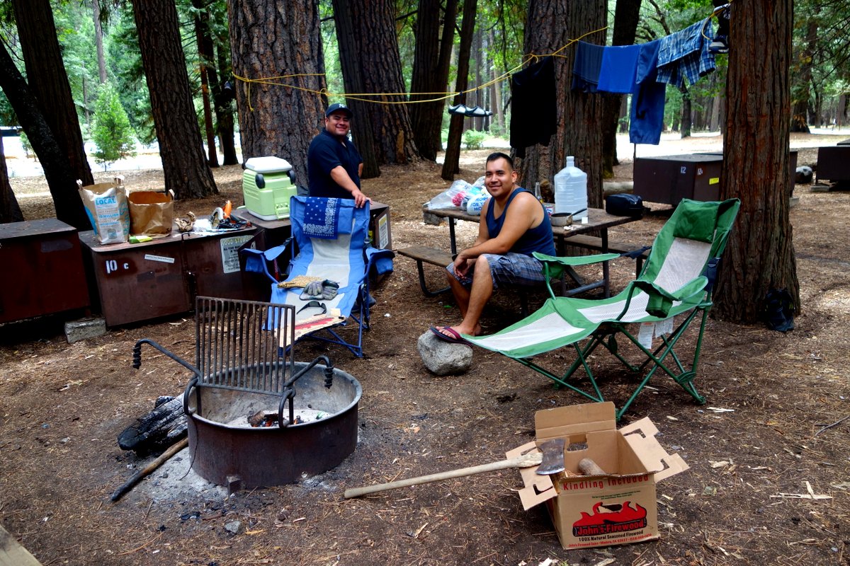 А вот нашии соседи по участку. Два парня мексиканского происхождения приехали провести праздники на природе, притащив с собой холодильничек с пивом, пару стульев, кучу дров (на кемпинге можно жечь костры), и огромный топор, чтоб их колоть.