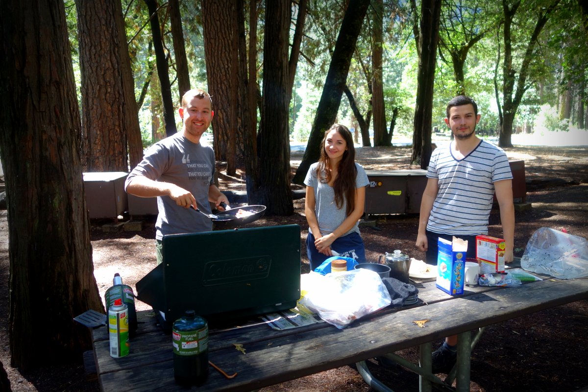 Остатки пира нельзя оставлять снаружи, чтоб не привлекать медведей. Даже в машине нельзя - всё надо относить в специальные противомедвежьи ящики. По всей территории Йосемити висят предупреждения. Если оставишь еду в машине на ночь, можешь получить солидный штраф, а уж если медведь её найдёт, то якобы всю машину расковыряет.