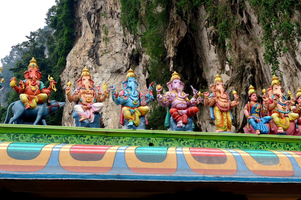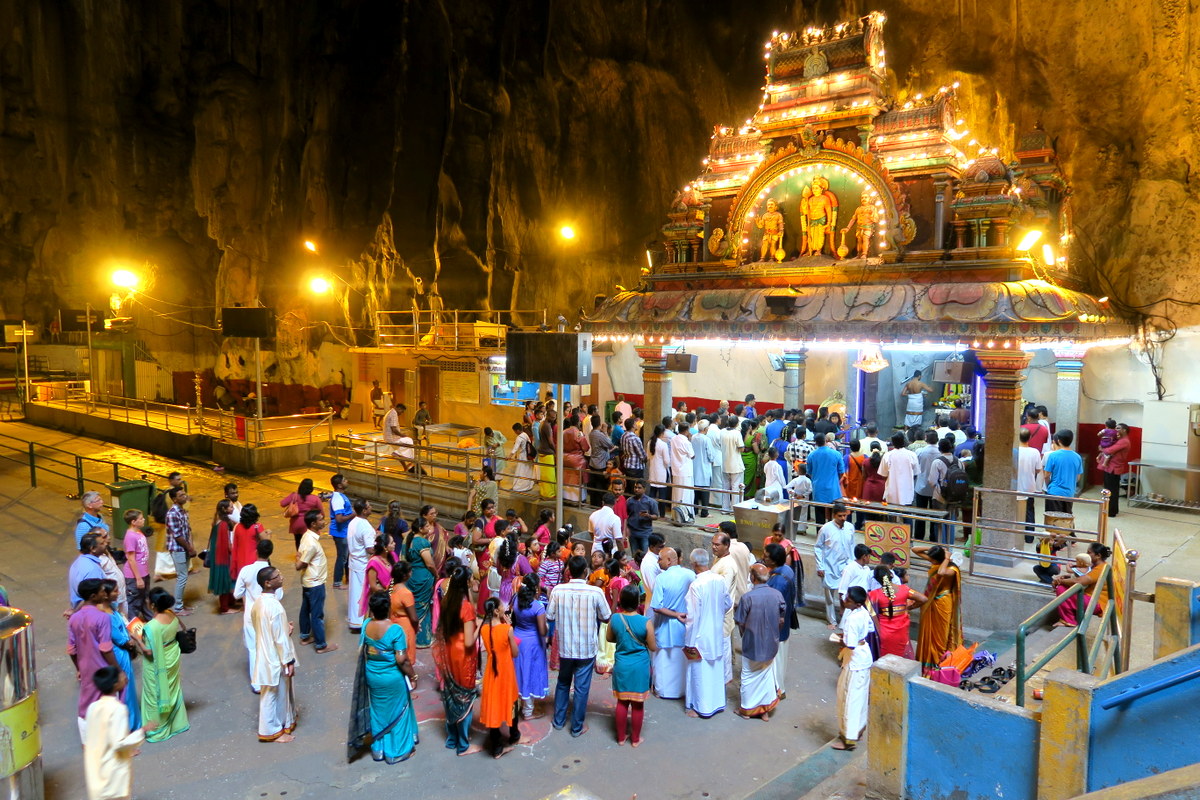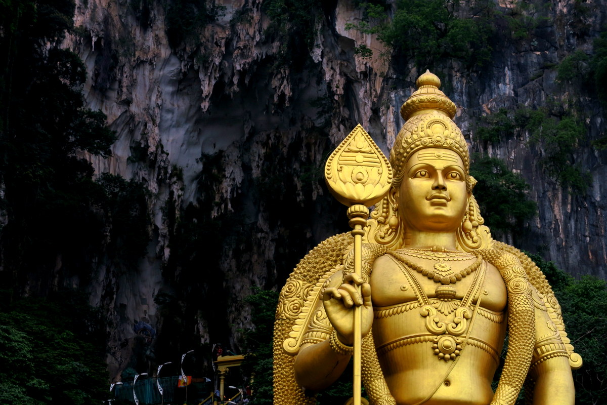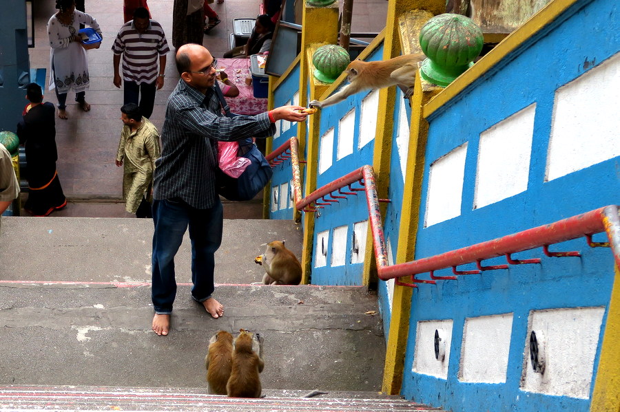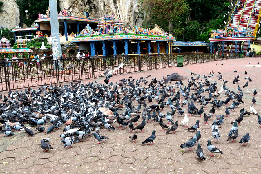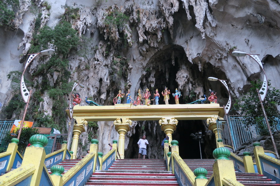 Ведь это не просто пещеры, а действующий индуистский храм - самый известный за пределами Индии! Храм посвящён богу Муругану - его сорокаметровое изображение стоит у подножия горы, в которой находятся пещеры.