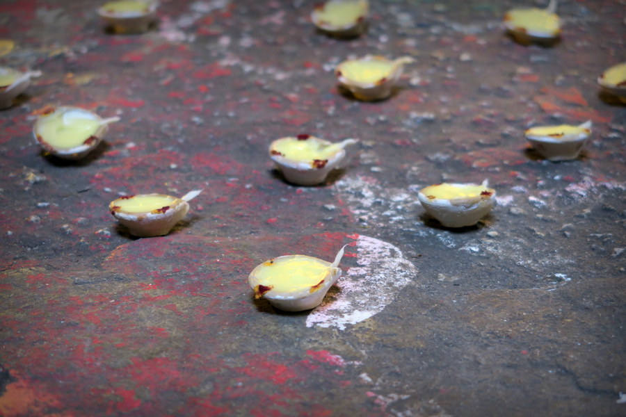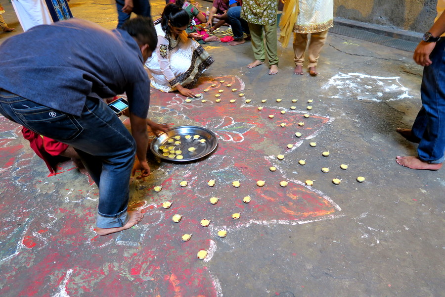 Пока я ходил по пещере, в главном храме закончилась служба. Люди правда не расходились. Большинство осталось стоять и обсуждать что-то маленькими группами. Некоторые стали расставлять на полу вот такие штуки разными узорами. Эти вот например еврейскую звезду строили, сверяясь по рисунку на мобильнике.