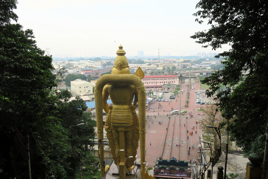 Муруган сзади. Отсюда был бы неплохой вид на Куала Лумпур, но к сожалению в воздухе почти всегда висит серая дымка, и так далеко просто не видно.