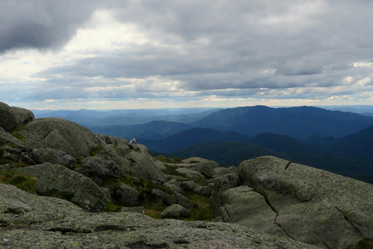 Мы стараемся с друзьями сюда как минимум раз в год выбираться, чтоб залезть на какую-нибудь из местных вершин. На этот раз нашей целью была гора Марси - самый высокий пик хребта (и всего штата Нью Йорк). Высота там всего 1629 метров, это далеко не Эверест, и даже не Эльбрус, но всё же это километровый подъём. И зона суб-арктического климата на вершине - тут не растёт ничего кроме травы и моха.