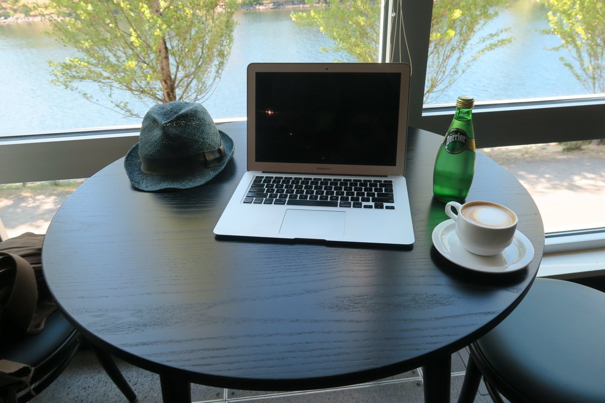 Рабочее место в офисе в Сиэттле. За окном река, по ней весь день мелькали байдарки