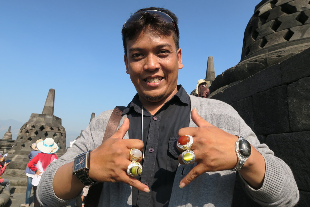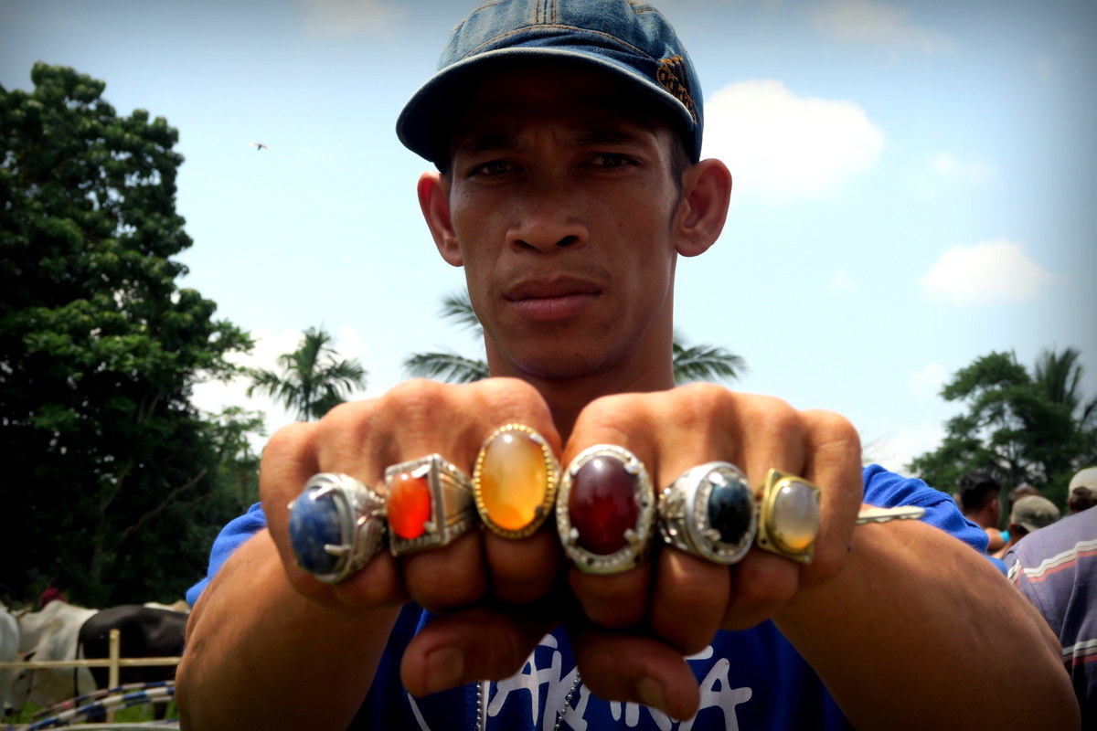 Есть у жителей Индонезии странная мода на увесистые перстни с большими полудрагоценными (а может и вовсе не драгоценными) камнями. Вот такими.
